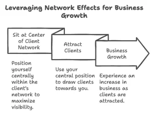 Using network effects is a great way for you to leverage your business growth and to put your brand on autopilot because you can sit in the center of your client's network, and that will help you to start to attract them directly to you.